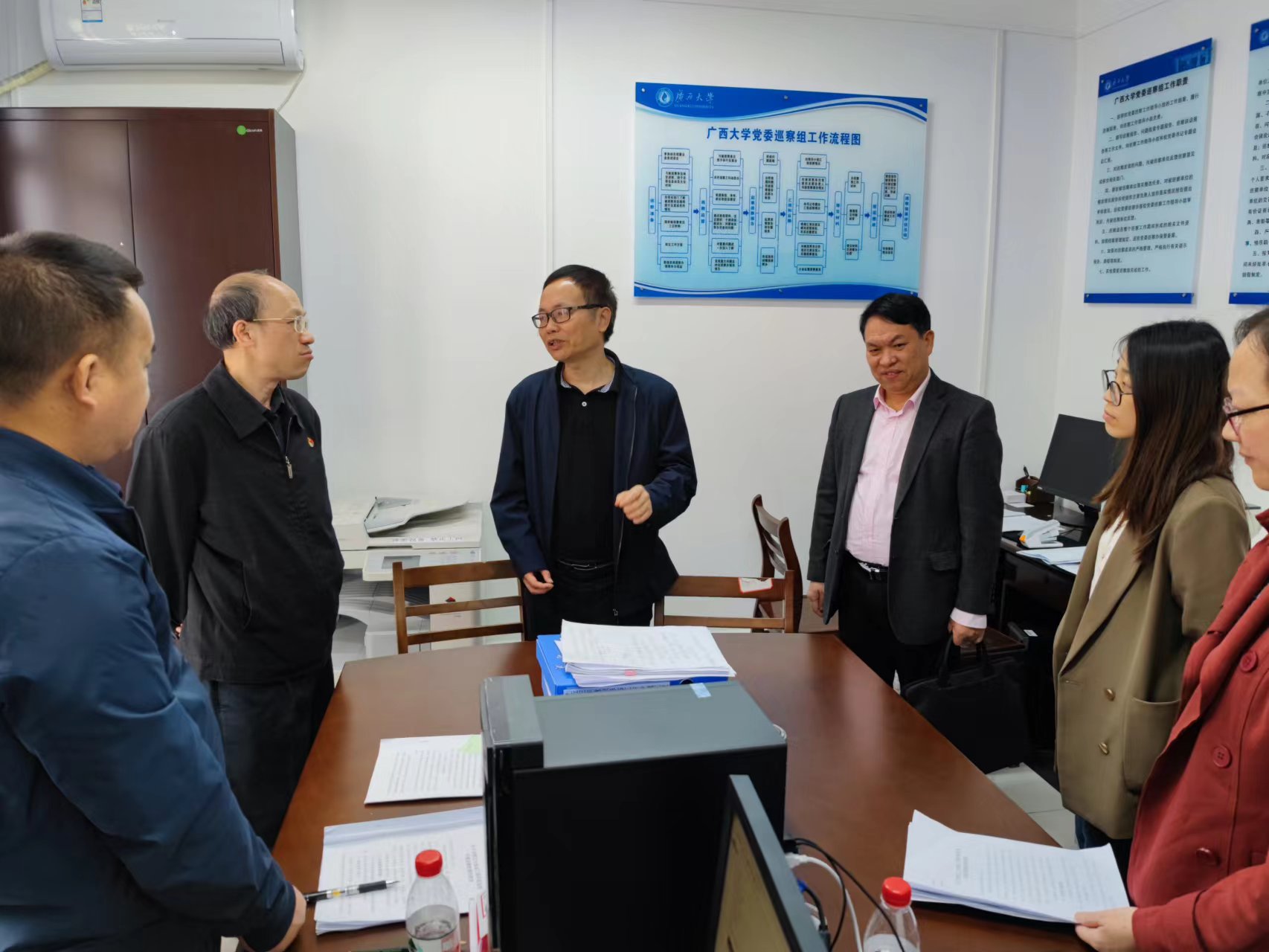4月20日,校党委常委、纪委书记、党委巡察工作领导小组常务副组长吕逸深入第七轮巡察各巡察组驻点工作室检查指导工作。校纪委副书记、党委巡察办主任石远吉陪同检查指导。吕逸听取了各组的巡察工作进展情况汇报,就工作重点、难点进行了具体指导,并对做好下一阶段巡察工作提出了明确要求。